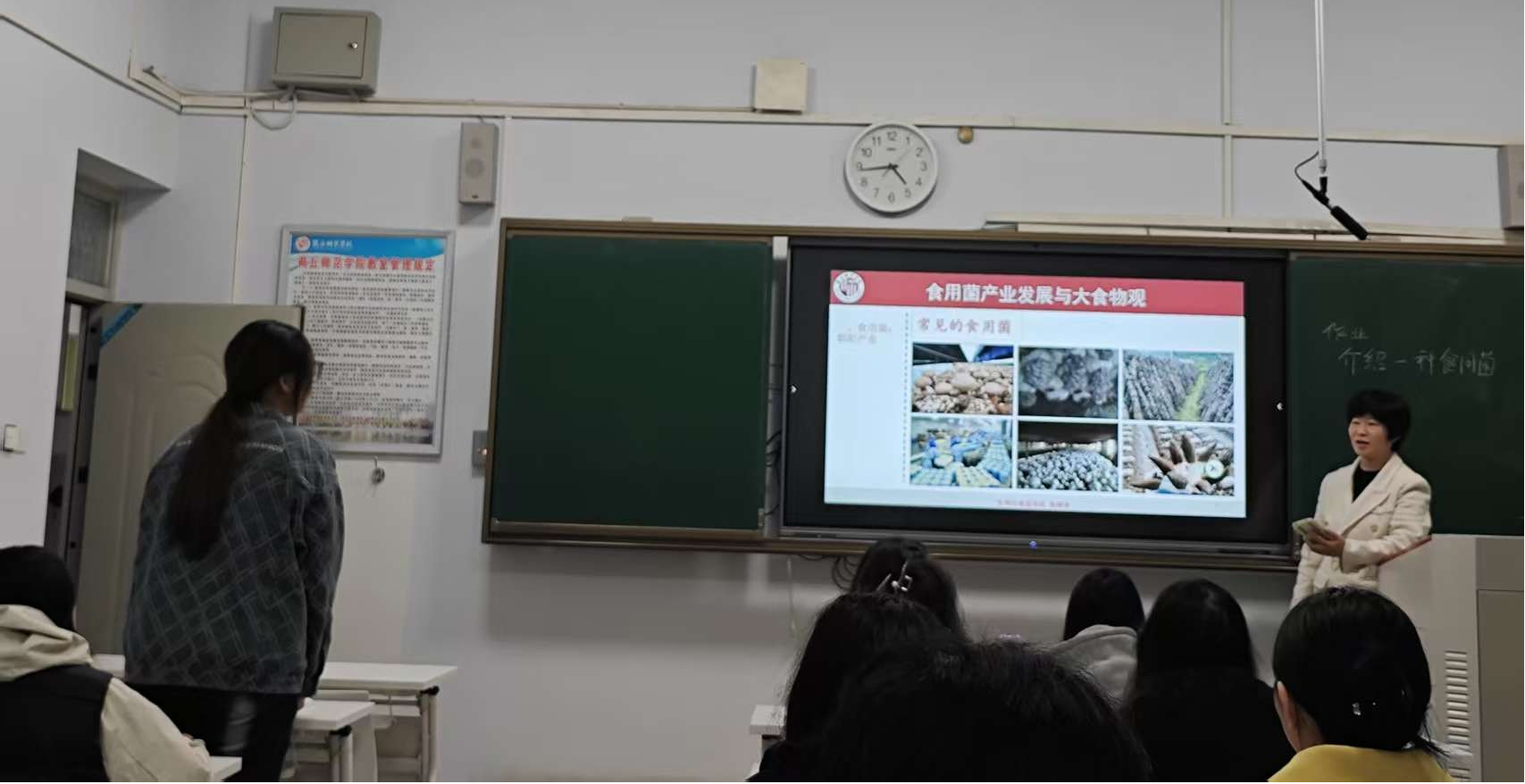 2025年11月6日下午,英国上市365生物工程专业朱晓琴副教授主讲的《食药用菌生产工艺学》课程教学范式综合改革公开课在睢阳校区1号教学楼413教室进行,课题是“食用菌产业发展与大食物观”,主要内容为食用菌营养价值与药用价值、食用菌产业发展现状。生物工程多位老师观摩了此次公开课,生物工程专业2024级同学参加了公开课。