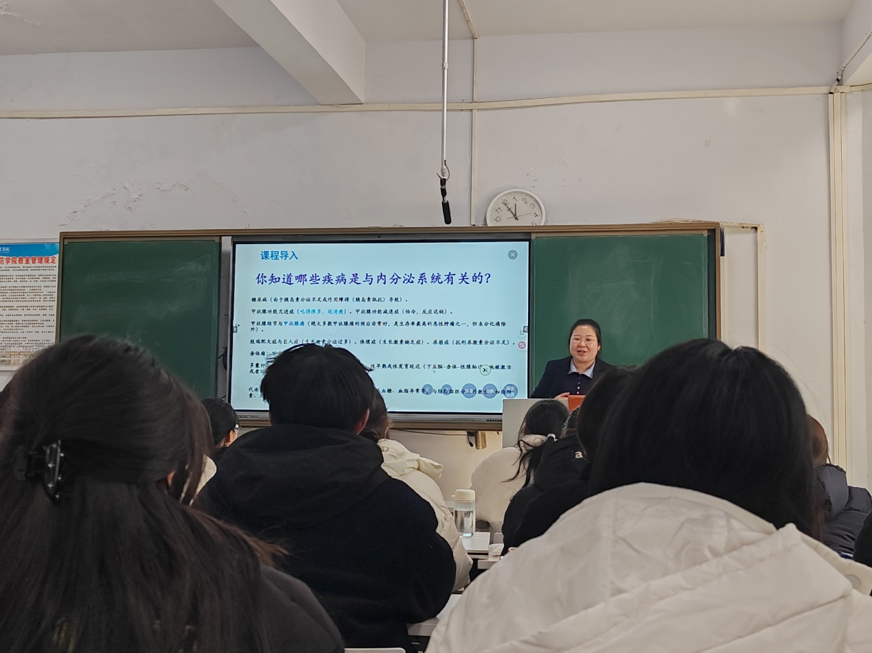 本次公开课讲授的主题为“内分泌系统”。课程采用“线上+线下”的混合教学模式,依托“学习通”平台,整合课堂互动、讨论与课堂测验,结合病例与学科特色,呈现了一堂兼具人体结构及功能与健康的内分泌腺的讲解。